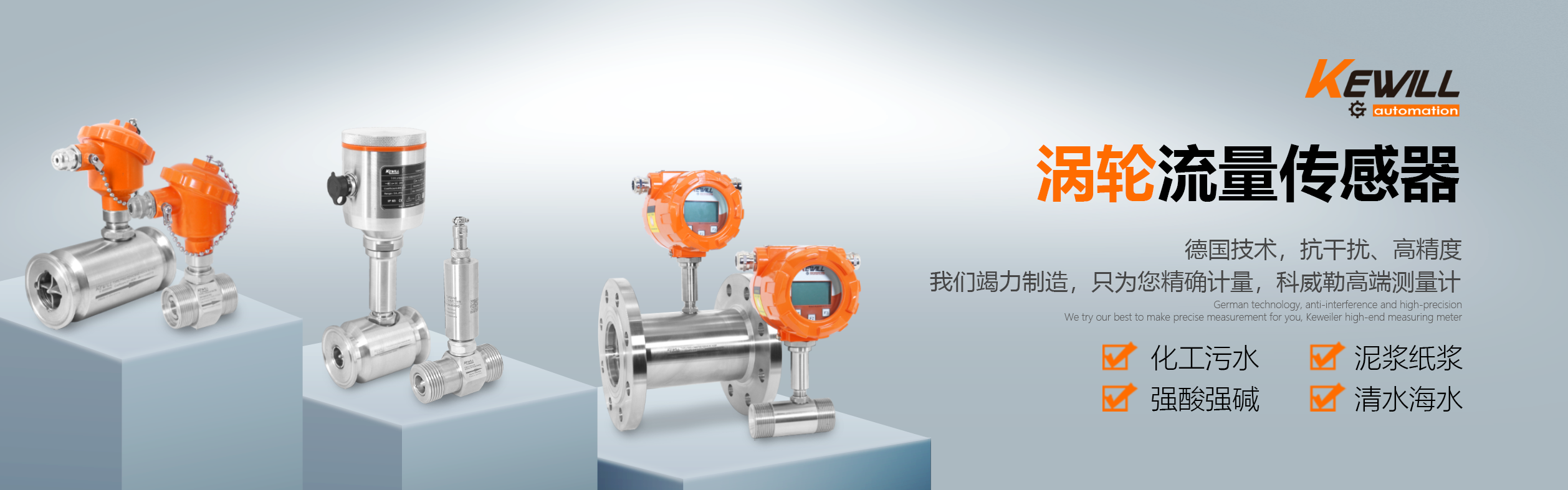 科威勒(中國)自動化有限公司是KewillAutomationGmbH(德國科威勒自動化公司)的全資子公司,主要銷售產(chǎn)品有:流量計,電磁流量計,進口流量計,進口電磁流量計,KEWILL(科威勒),溫度傳感器,流量傳感器,壓力傳感器,液位開關(guān),壓力開關(guān),物位開關(guān),溫度開關(guān),流量開關(guān),液位計等,銷售熱線:021-54430662. 德國科威勒 (KEWILL)成立于1975年,位于德國 Flughafenstr. 1-4 2325 Hamburg,主要生產(chǎn)流量開關(guān)、流量監(jiān)控器、流量計,是當(dāng)前世界上較大的小口徑流量監(jiān)控器和開關(guān)生產(chǎn)工廠。1993年通過了ISO9001國際認 證,1999年發(fā)明了熱傳溫差技術(shù)并成功運用到流量檢測領(lǐng)域并已成為行業(yè)標(biāo)準(zhǔn)。 科威勒(KEWILL)公司擁有嚴格的質(zhì)檢管理體系和完善的售后服務(wù)體系,高品質(zhì)和良好的聲譽奠定了其在行業(yè)內(nèi)世界先進地位。